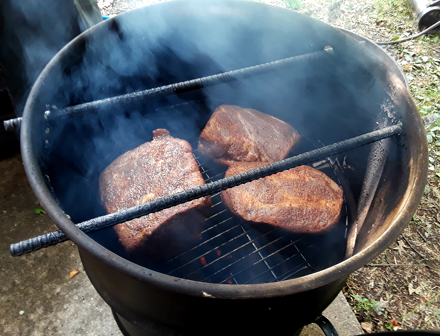 Step 2: Fire up your smoker and put the pork on for a good four hours.