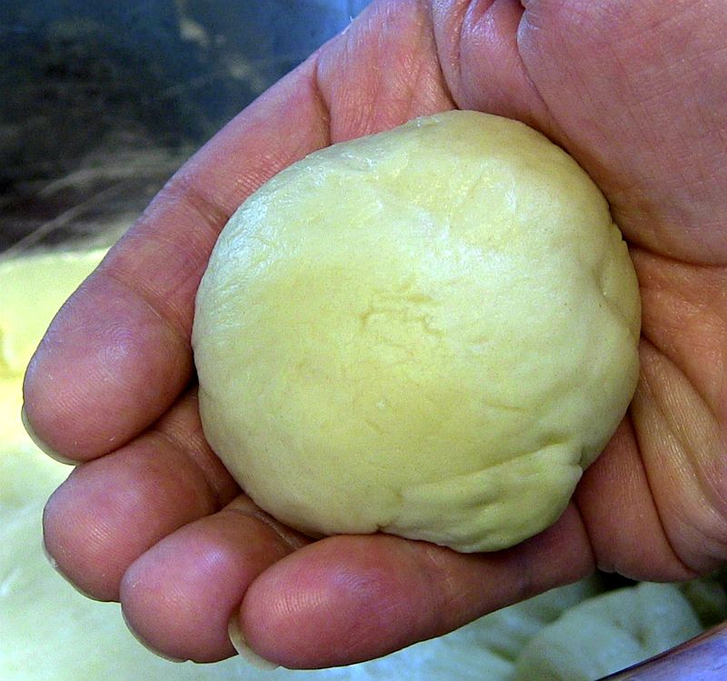 Step 2: After the dough has doubled in size, knead it for a second time. Weigh out three ounce portions and work with the hands to form a cohesive ball. Cup the bun in the palms of the hands and shape into a smooth ball. Place on a sheet tray covered with parchment paper or silicone mat. After all the buns are formed, allow to rise for about an hour.