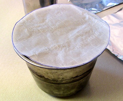 Step 2: Cut a round of parchment paper to cover the top of the pudding tin.