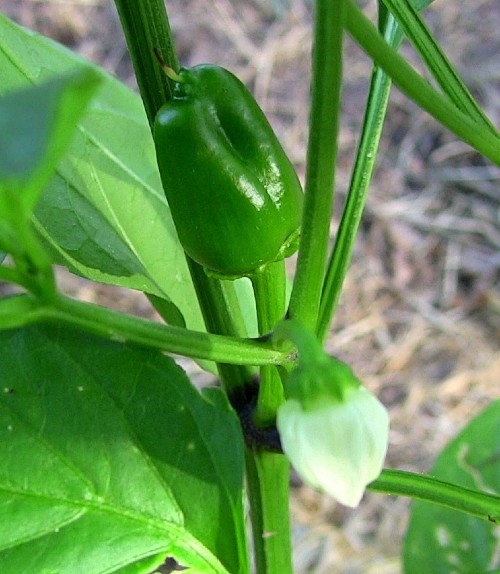 As the weather warmed to above 70°F. in April, I was able to get the plants outside for extra light and heat and get them used to a little breeze. That process is called “hardening off” and their growth really shot up. By mid-May they were ready to be planted in the garden. The seedlings were planted in the garden on May 21st and the first pepper was sighted on June 23, 2023.