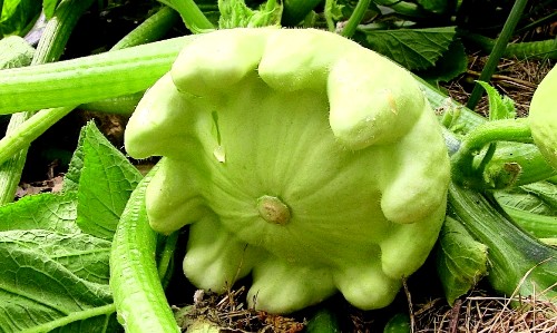 My next-door neighbors and I exchanged plants we grew from seed this year. They got Ausilio Peppers and we got Pattypan Squash. This bread is a nice savory alternative to the many sweet quick breads that make use of summer squash and zucchini.